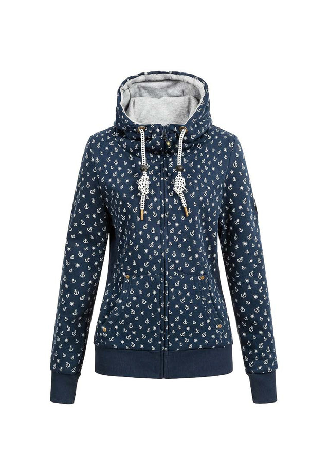 - Maritime kuschelige Damen Sweatshirt Jacke mit Ankermotiv