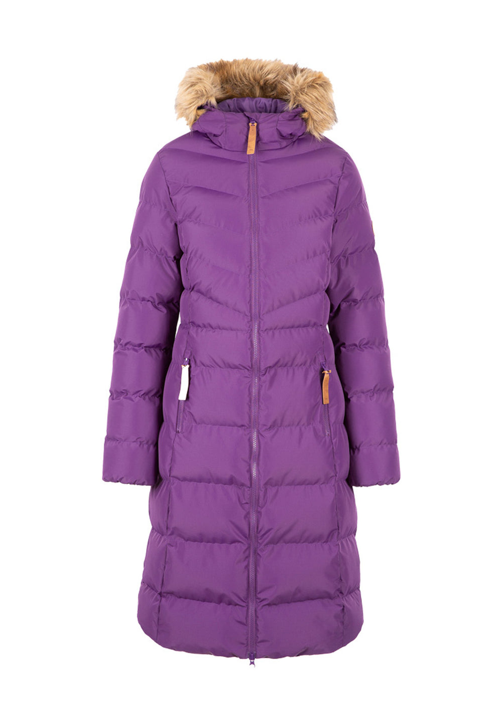 Dieser Outdoormantel AUDREY für Damen von Trespass ist der ideale Begleiter bei winterlichen Aktivitäten im Freien. Dank seiner hervorragenden Isolation hält der Damen Steppmantel deinen Oberkörper angenehm warm. Durch die formschöne, angeschnittene Kapuze mit Fellbesatz sowie den anschmiegsamen Kragen wird der Kuschel- und Wohlfühlfaktor zusätzlich gesteigert. Mit dieser Ausstattung wird der nächste  Winterspaziergang zum reinsten Vergnügen. Durch die wasserabweisende Imprägnierung, die gänzlich frei von PFC ist, werden sowohl der Körper als auch die Natur geschützt. Der Mantel verfügt über einen 2-Wege Reißverschluss und zwei seitliche Einschubtaschen in den alles Wichtige für unterwegs untergebrachte werden kann.